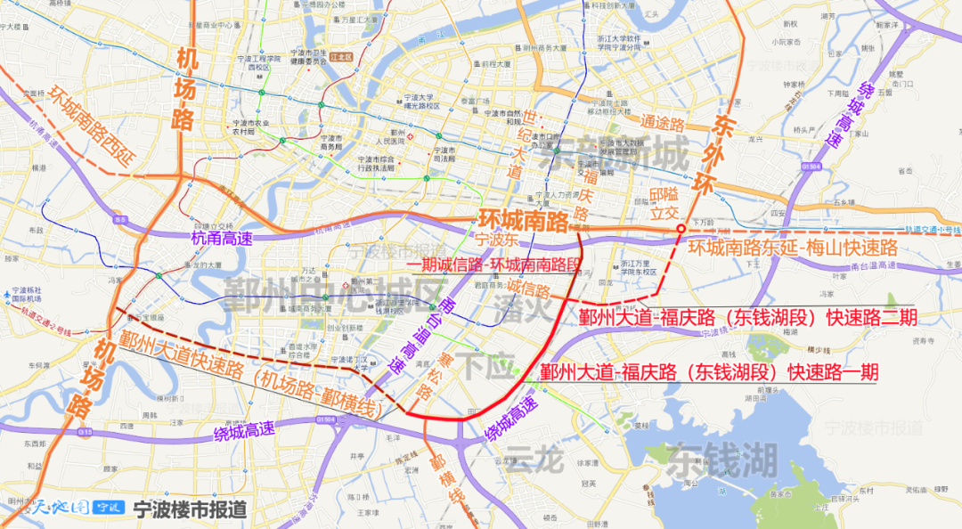 這條快速路,是東部新城連接?xùn)|錢(qián)湖以及鄞州中心城區(qū)重要的快速通道。