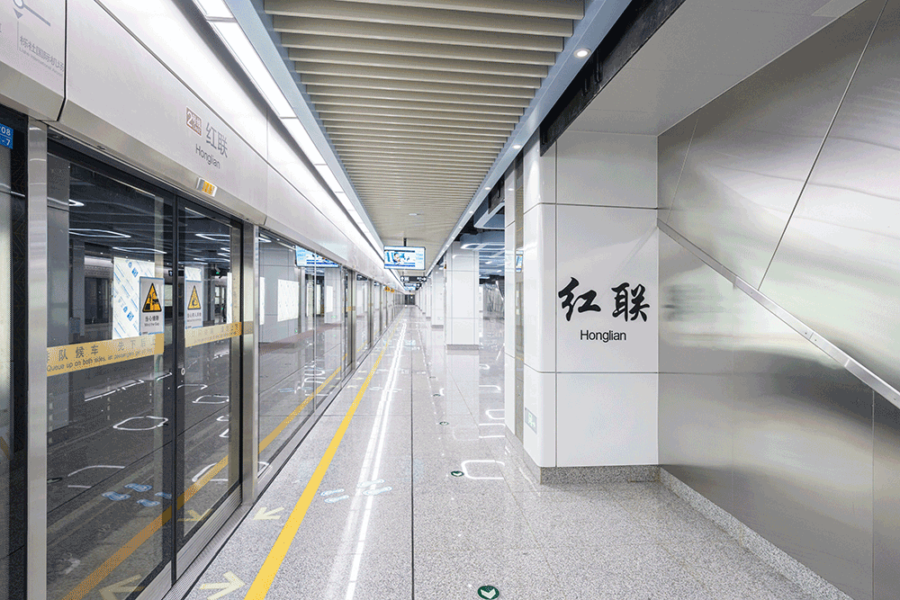 沿渡口路設(shè)置,為地下二層島式站臺車站。設(shè)有A、D、E三個出入口。紅聯(lián)站設(shè)有母嬰室,位于D出入口,提供嬰兒尿布臺、休息座椅、物品放置桌子、濕巾、紙等。
