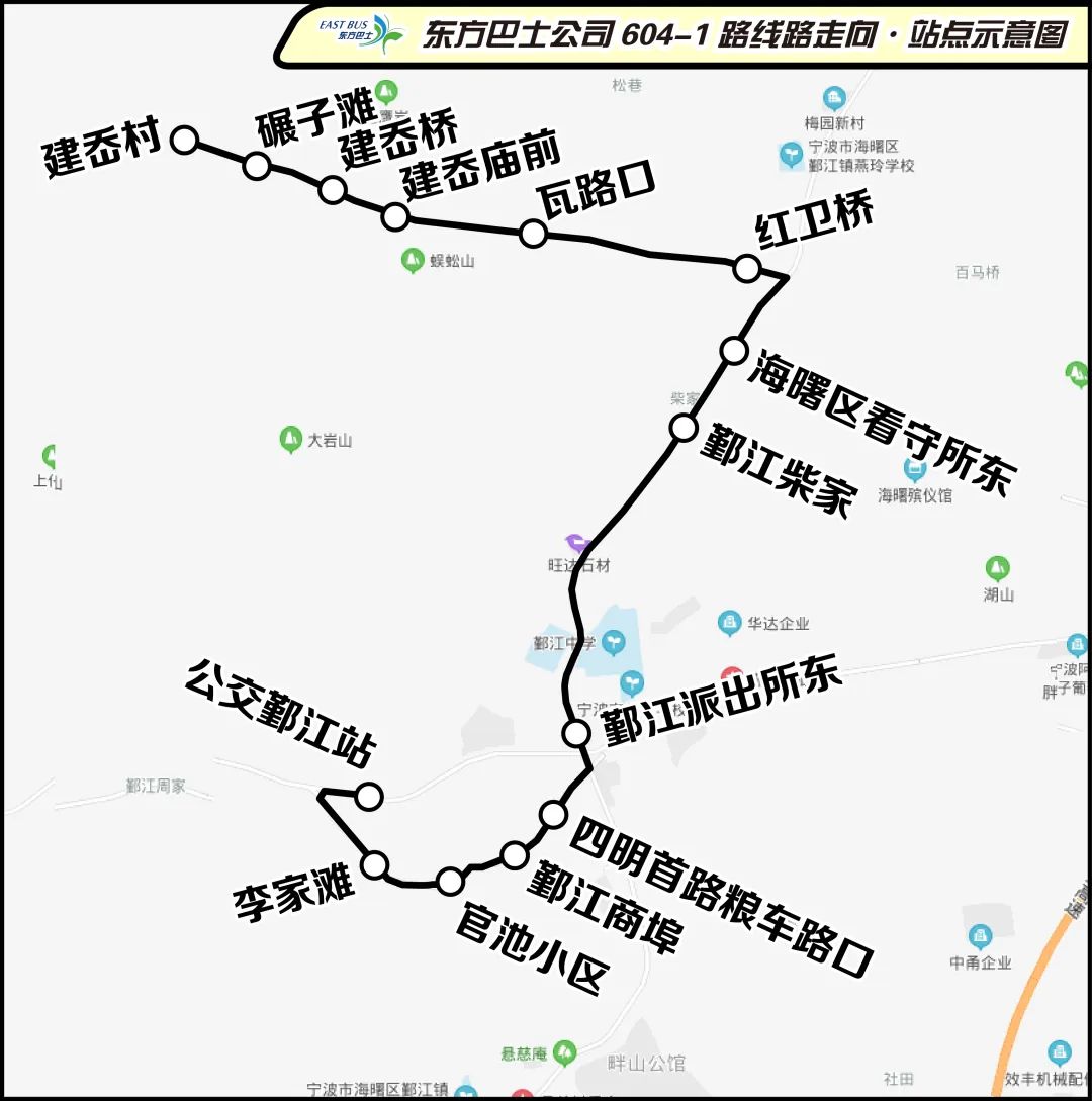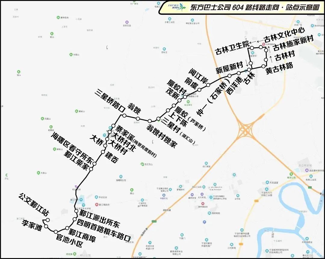 二、公交鄞江站經(jīng)建岙村至黃古林路的部分604路建岙班次調(diào)整為公交鄞江站至建岙村運(yùn)營,并編碼為604-1路