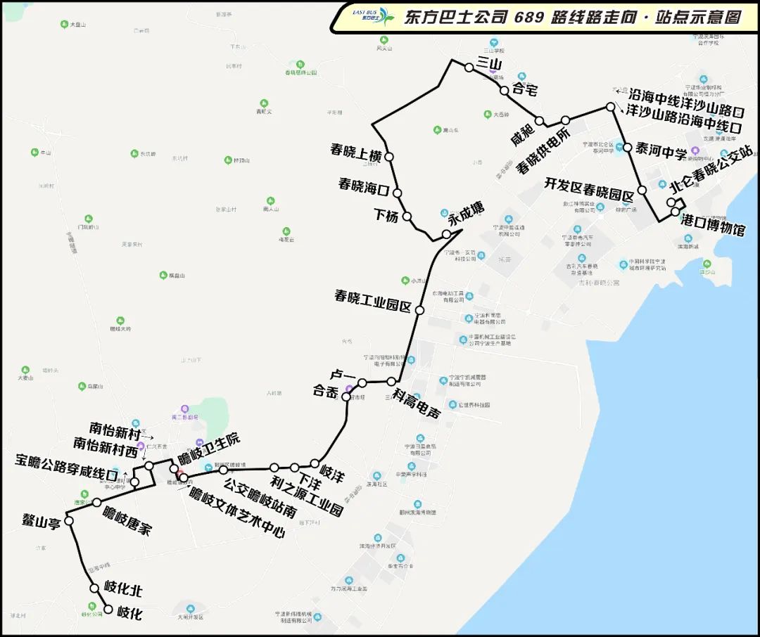 一、岐化至公交濱海站689路調(diào)整為岐化至北侖春曉公交站運(yùn)營