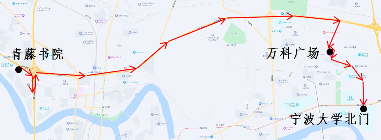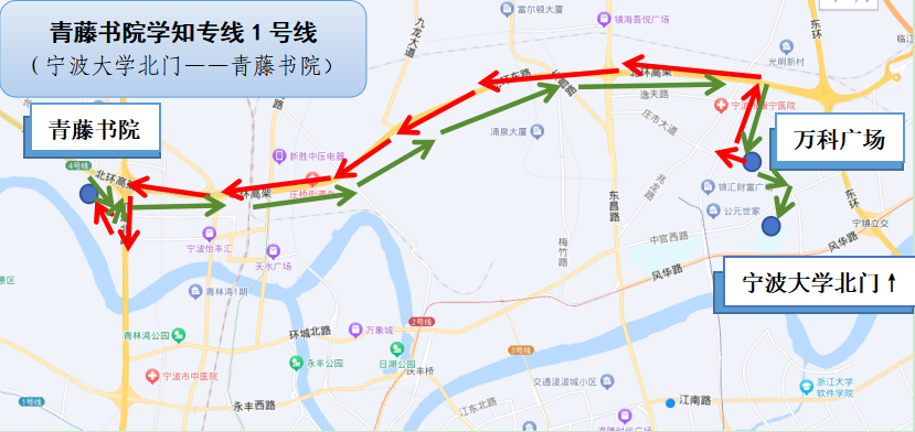 站點(diǎn)設(shè)置:寧波大學(xué)北門↑、萬科廣場、青藤書院