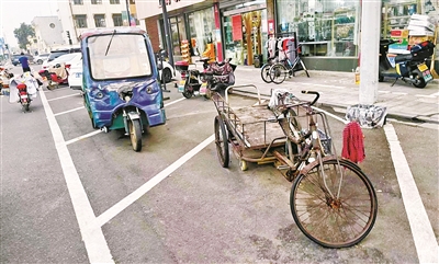 貴駟街道上海發(fā)聯(lián)超市門口公共停車位被三輪車占用。