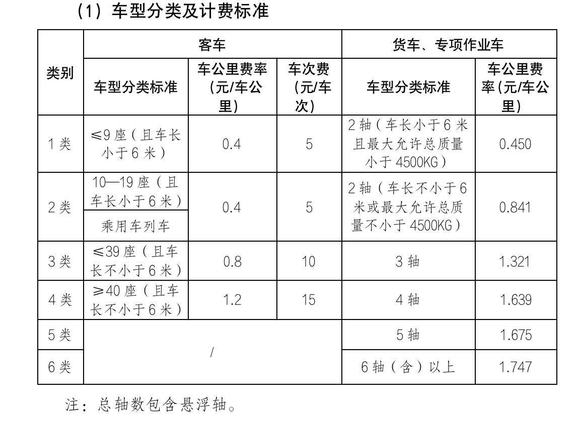 相關(guān)車(chē)型的收費(fèi)里程,詳見(jiàn)下表(最終收費(fèi)標(biāo)準(zhǔn)以省政府批復(fù)為準(zhǔn)):