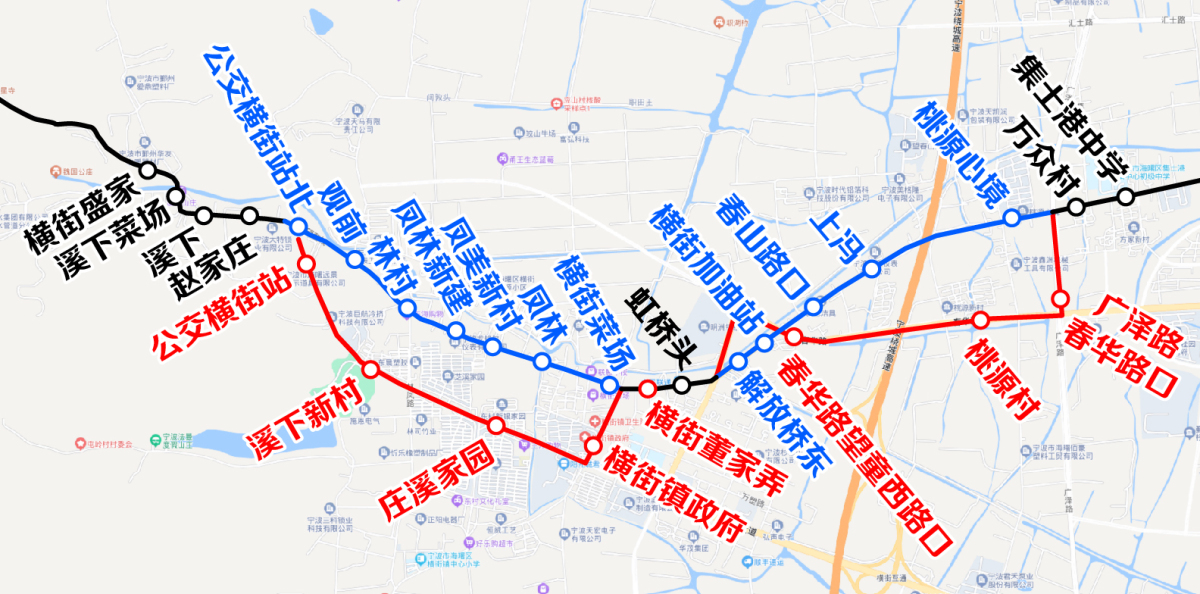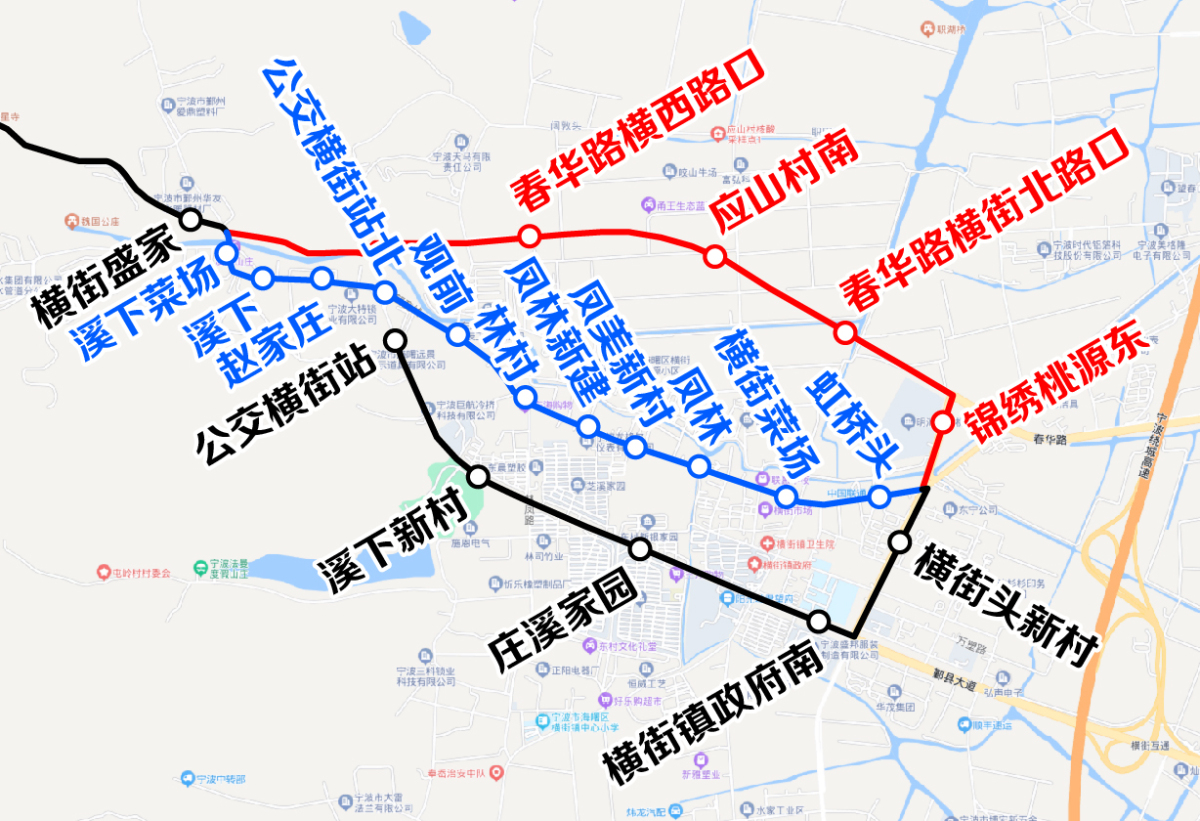 3.單向臨時增設(shè):公交橫街站、溪下新村(日月星養(yǎng)老院)、莊溪家園、橫街鎮(zhèn)政府、橫街董家弄、春華路望童西路口、桃源村、廣澤路春華路口站點。