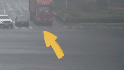 公共視頻顯示,事發(fā)前,兩車同時在各自的左轉(zhuǎn)彎車道等候信號燈。在信號燈轉(zhuǎn)為綠燈后,黑色轎車先行一步,但由于轉(zhuǎn)彎半徑過小,“堵”住了半掛車的去路,導(dǎo)致黑色轎車直接進(jìn)入紅色半掛車車頭盲區(qū)范圍,于是發(fā)生了碰撞。