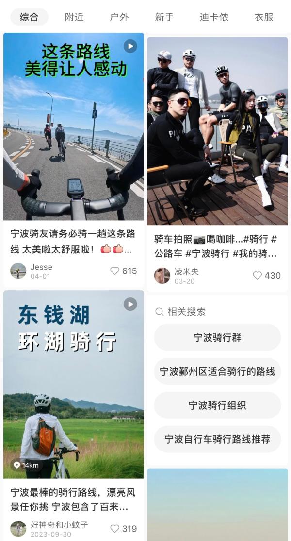 在小紅書搜索“騎行”,已有超過500萬篇筆記。其中,“寧波騎行”話題已有超過2萬篇,騎行路線與騎行體驗(yàn)是主要分享內(nèi)容。記者注意到,東錢湖環(huán)湖、三江六岸濱江綠道、象山大目灣環(huán)灣等熱門騎行線路相關(guān)的筆記占比超過30%。