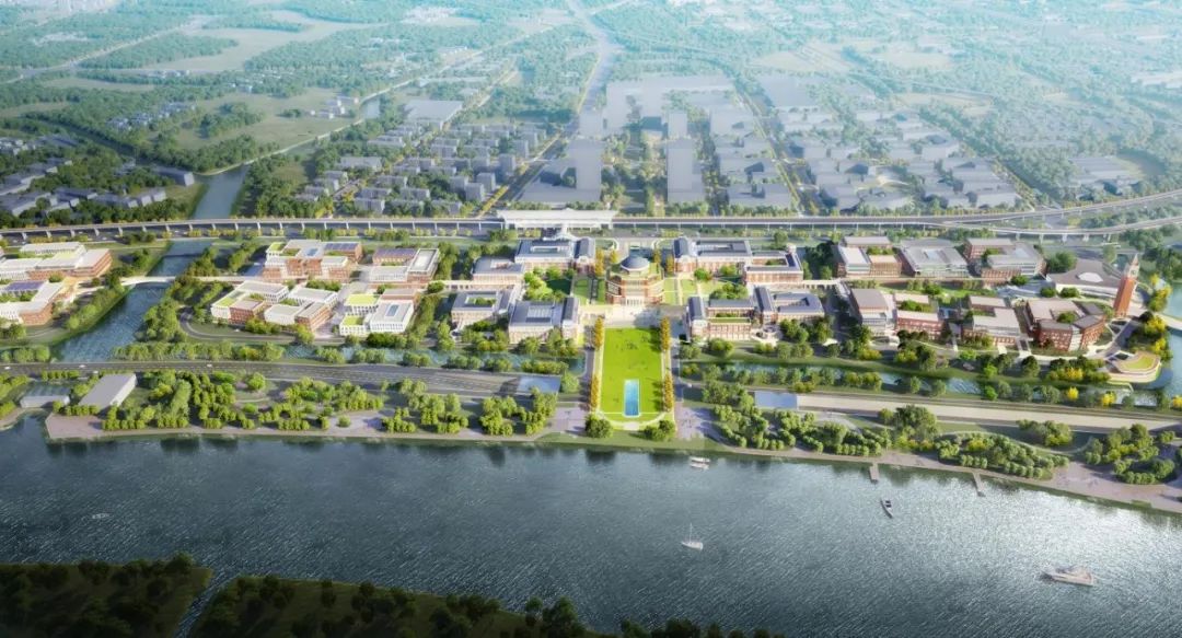 從以下效果圖可以看出,隧道上方,是寧波東方理工大學(xué)(暫名)不受道路阻隔、直接延伸到甬江邊的大草坪。