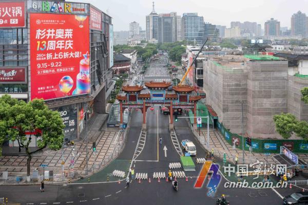 今天(10日)上午九點(diǎn)半,隨著最后一輛小轎車從城隍廟牌樓下駛過,交警將路障放置完畢,開明街(藥行街—大沙泥街段)正式禁止一切車輛通行,這標(biāo)志著開明街步行化改造的大幕即將拉開。