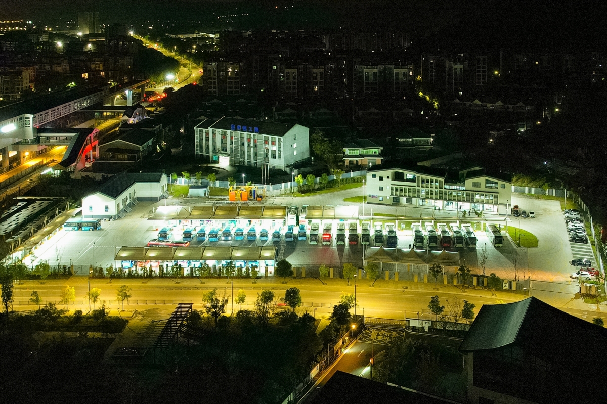 新公交慈城西站位于寧波市江北區(qū)寧慈西路1398號(hào),占地面積約11806平方米,房屋建筑面積約2311.65平方米,建設(shè)了包括車輛發(fā)車區(qū)、乘客候車亭、站務(wù)室、駕駛員休閑區(qū)等多個(gè)配套設(shè)施,可容納約64輛公交車輛停放,并配備了48個(gè)充電樁以供充電。