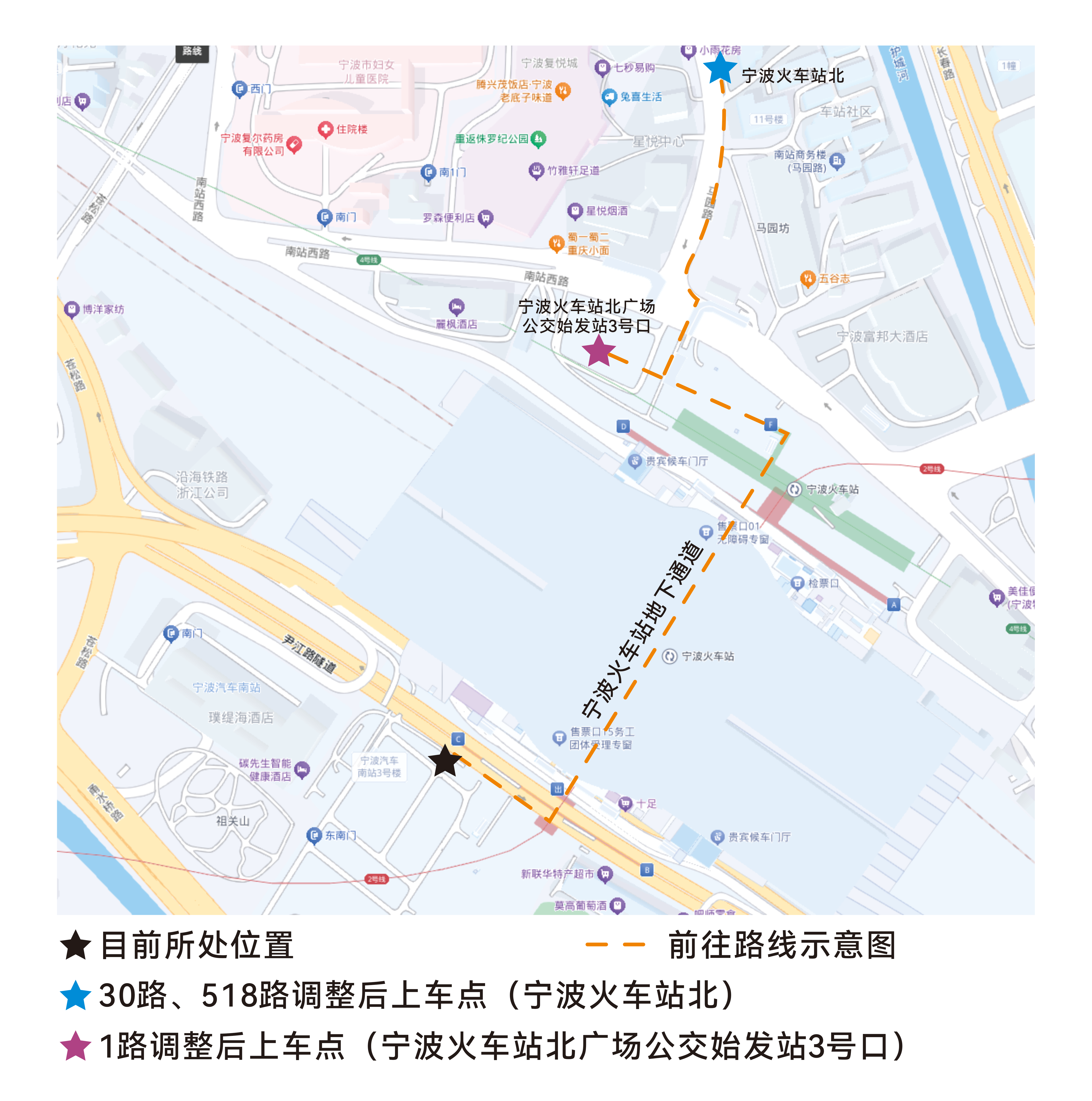 。ㄒ唬┱{整走向:到達寧波火車站南?筐畼蚵罚繁保幉ɑ疖囌灸习l(fā)車?筐畼蚵罚纺希。