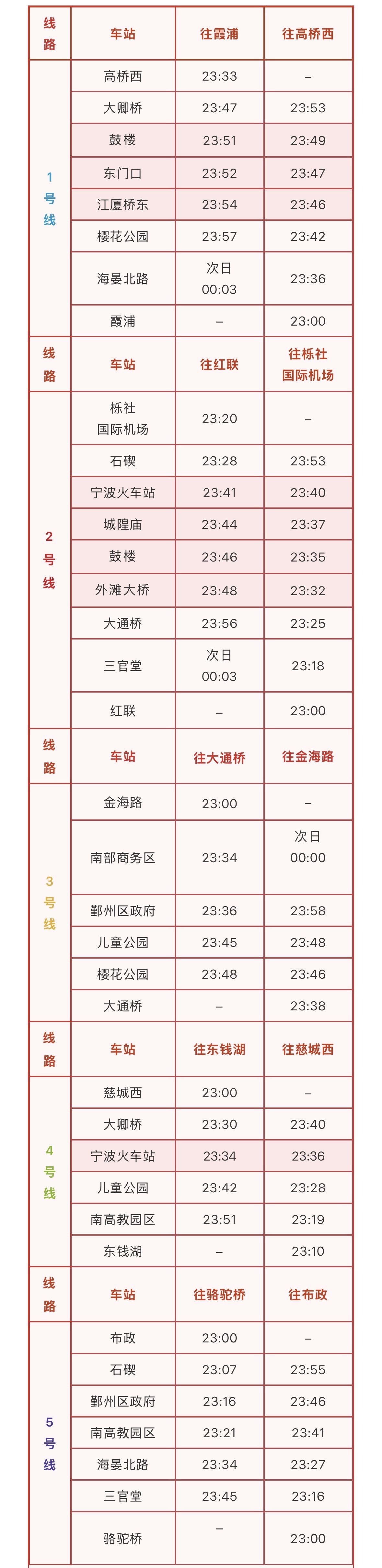 “五一”假期即將來(lái)臨,從4月30日起至5月5日,寧波地鐵全線網(wǎng)延長(zhǎng)運(yùn)營(yíng)1小時(shí)。