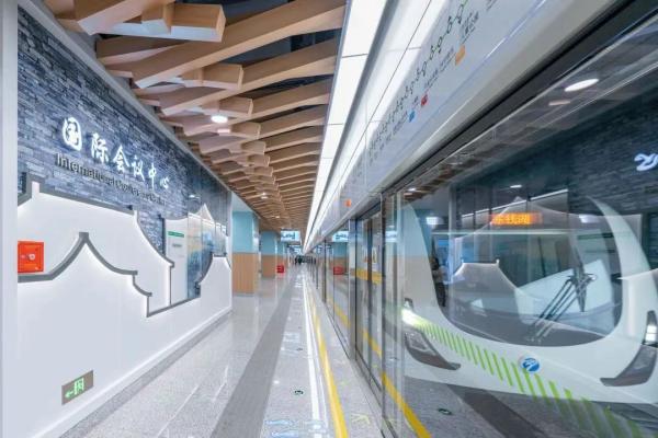 國際會議中心站設(shè)計風格延續(xù)4號線主題。通訊員供圖
