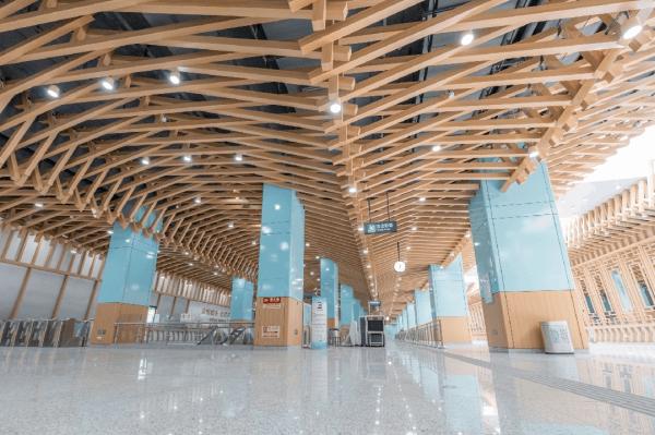 4號線延伸工程東延段全長約2.51公里,設(shè)一站一區(qū)間,途經(jīng)鄞州區(qū)東錢湖鎮(zhèn),起于4號線東錢湖站,終于國際會議中心站。該站設(shè)計延續(xù)了“海絲之路”主題,通過色彩、材質(zhì)與空間的融合設(shè)計,構(gòu)建連接城市歷史與未來的文化地標。