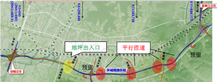 根據(jù)環(huán)評(píng)公示文件,環(huán)城南路東延快速路一期工程(主線(xiàn)段),西起鄞州區(qū)邱隘互通(東外環(huán)路),東至北侖區(qū)規(guī)劃富春江立交的厘安山隧道,全長(zhǎng)約11公里,沿線(xiàn)穿越邱隘、五鄉(xiāng)、中車(chē)等地塊,串聯(lián)蟠龍路、南北大道、寶涵路、南車(chē)路等城市主干道及寶瞻公路,終點(diǎn)與項(xiàng)目啟動(dòng)段共同銜接富春江路。