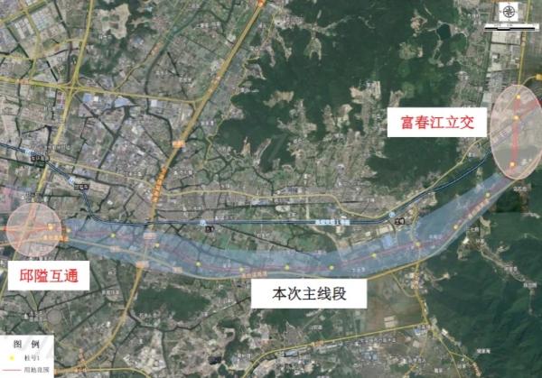 批復文件顯示,環(huán)城南路東延快速路一期工程(主線段)西起邱隘立交,東至富春江路,道路總長約12.3公里。
