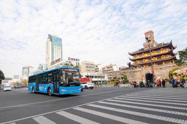 公交車駛過鼓樓。通訊員供圖