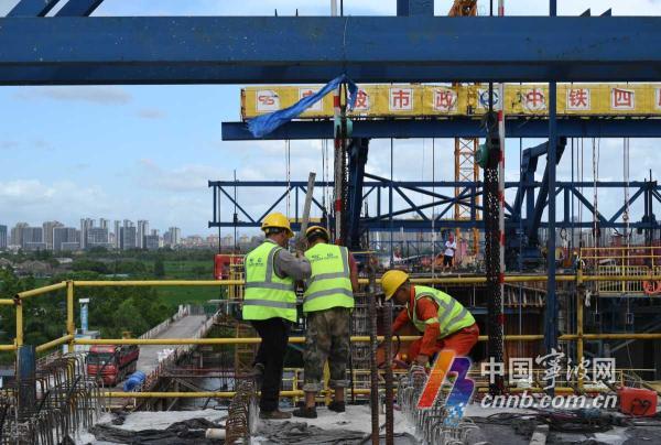 “主橋一共24個(gè)節(jié)段,每個(gè)節(jié)段長約4米,大約13天能完成一個(gè)節(jié)段。每完成一個(gè)節(jié)段,掛籃就往前推進(jìn)4米。隨著掛籃的遷移,就會產(chǎn)生一個(gè)新的作業(yè)平臺。”邵家渡大橋III標(biāo)段項(xiàng)目現(xiàn)場負(fù)責(zé)人尹慶雷告訴記者,“目前,我們采用左右掛籃交替作業(yè)的方式,加快推進(jìn)施工作業(yè),為今年10月份主橋的順利合龍打下堅(jiān)實(shí)基礎(chǔ)!”