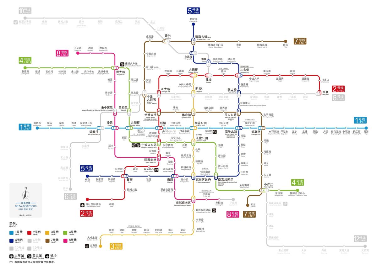 民安東路站、鎮(zhèn)海大道(慈海)站與5號(hào)線換乘;