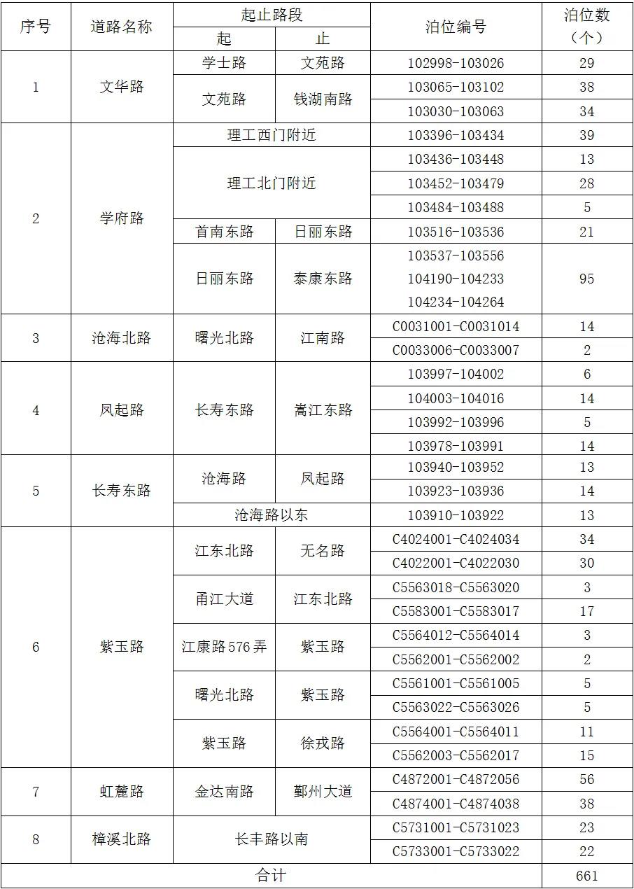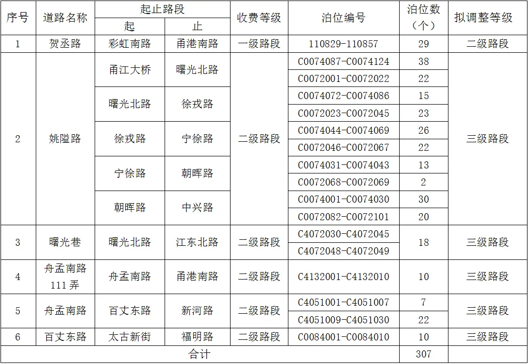 于2025年9月1日8時(shí)開(kāi)始對(duì)鄞州區(qū)賀丞路(彩虹南路-甬港南路)、姚隘路(曙光北路-中興路)、曙光巷(曙光北路-江東北路)、舟孟南路111弄(舟孟南路-甬港南路)、舟孟南路(百丈東路-新河路)、百丈東路(太古新街-福明路)六條道路開(kāi)展道路泊位的動(dòng)態(tài)調(diào)整試點(diǎn)工作。