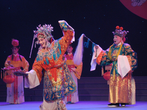 是的,紅花需要綠葉扶。如果沒(méi)有鎮(zhèn)海京劇聯(lián)誼會(huì)的票友為她配戲(2個(gè)太監(jiān)、8個(gè)宮女),這戲自然唱不成。而后來(lái)演出要把宮燈、掌扇、香爐、扶節(jié)等道具從鎮(zhèn)海運(yùn)到寧波,是江東區(qū)文聯(lián)領(lǐng)導(dǎo)為他們解決了車輛問(wèn)題。沒(méi)有道具,這戲也唱不成。
