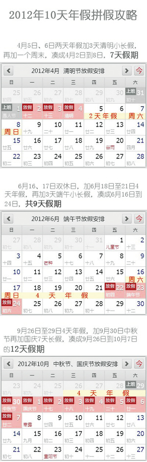 網(wǎng)上熱傳的2012年10天年假拼假攻略圖