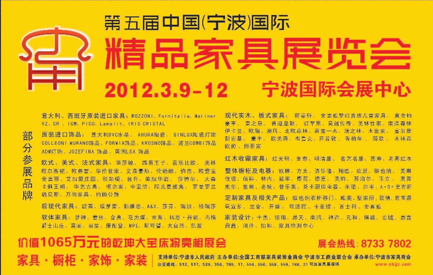 第五屆中國(guó)(寧波)國(guó)際精品家具展覽會(huì)(3.9--12)