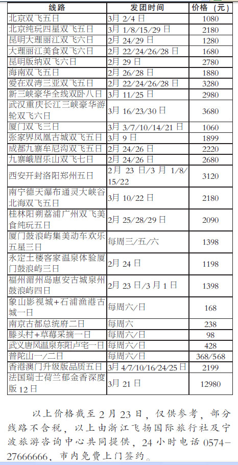 截止23日國(guó)內(nèi)外特價(jià)旅游線路價(jià)格信息