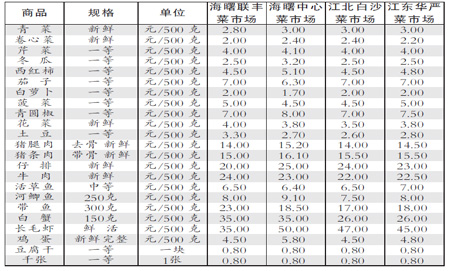 據(jù)監(jiān)測(cè),與上期相比,本期列入民生價(jià)格信息公開(kāi)范圍的114家超市的49種商品價(jià)格總水平上漲2.30%,4家農(nóng)貿(mào)市場(chǎng)的35種商品價(jià)格總水平微幅下跌0.68%。本期超市商品價(jià)格總水平上漲2.30%。在49個(gè)監(jiān)測(cè)品種中,價(jià)格周環(huán)比上漲的有17種、下跌的有16種、持平的有16種。從種類(lèi)來(lái)看,蔬菜、肉、魚(yú)類(lèi)均價(jià)分別上漲7.39%、4.06%、3.24%;食用油、蛋類(lèi)均價(jià)分別下跌0.37%、0.27%。從具體品種來(lái)看,芹菜、西紅柿、土豆、青菜、胡蘿卜價(jià)格分別上漲40.50%、23.01%、15.57%、11.31%、10.36%;韭菜、黃瓜、西瓜價(jià)格分別下跌16.29%、8.68%、3.52%。