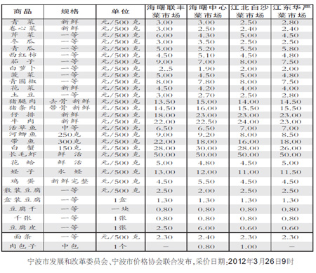 寧波市區(qū)民生商品價格公開信息(采樣3月26日)