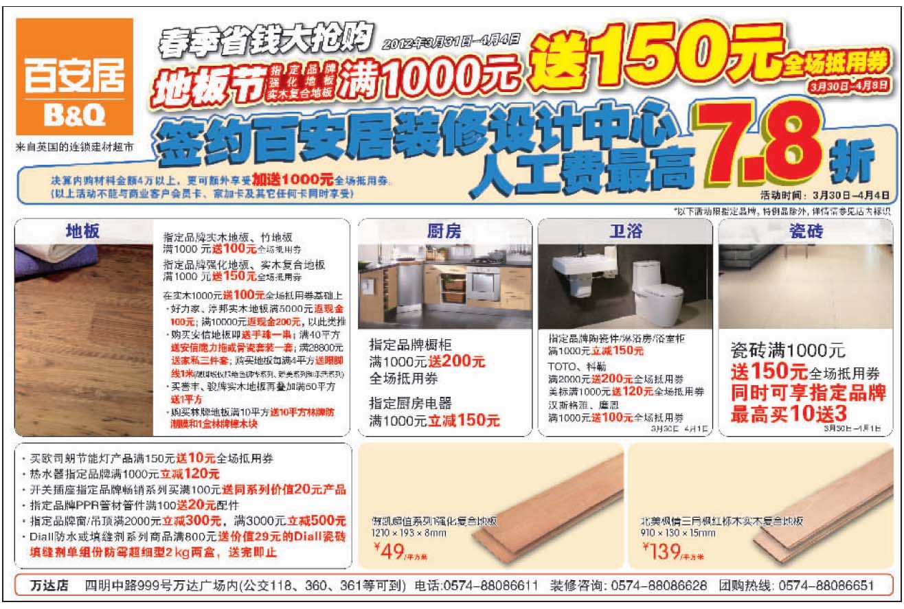 百安居3月30日-4月4日打折信息