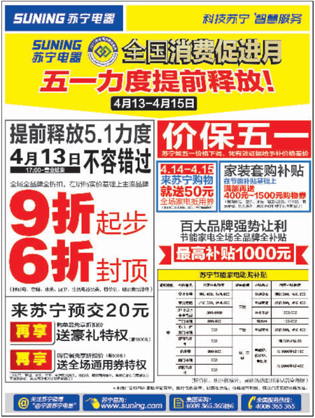 蘇寧電器4月13日-15日打折信息