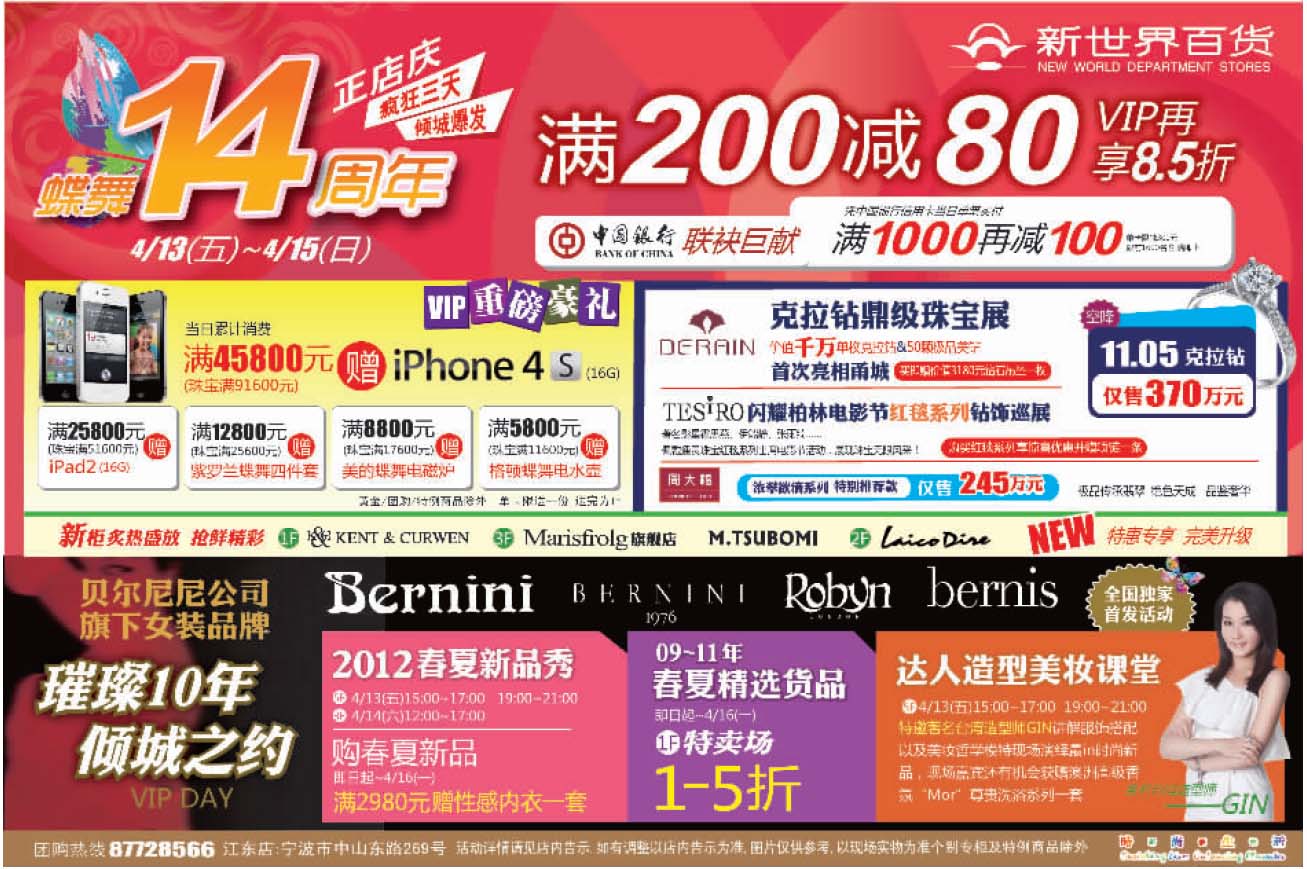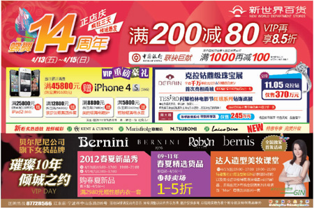 新世界百貨4月13日-15日打折信息