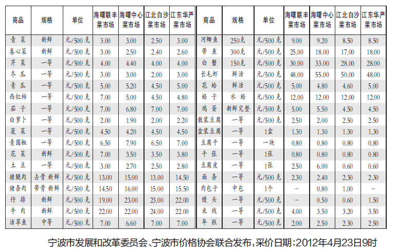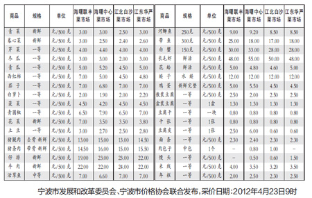 寧波市區(qū)民生商品價(jià)格公開信息(采樣4月23日)