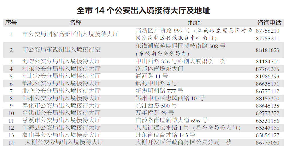 而在此之前,5月3日,市公安局在高新區(qū)、東錢湖新開設(shè)出入境接待大廳(室)。