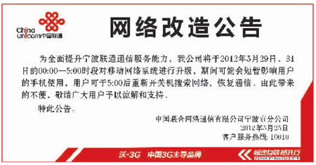 中國聯(lián)通網(wǎng)絡(luò)改造公告