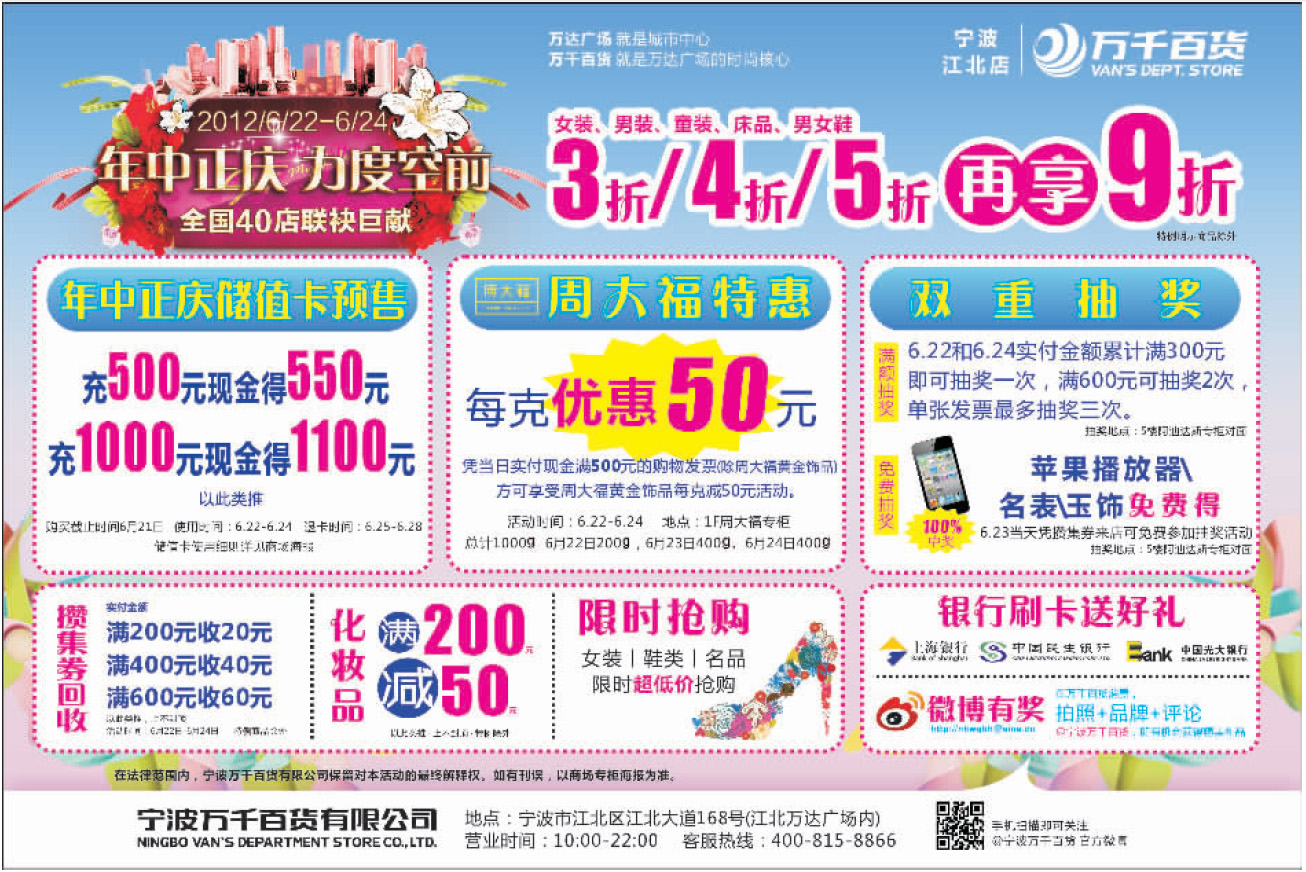 萬(wàn)千百貨6月22日-24日打折信息