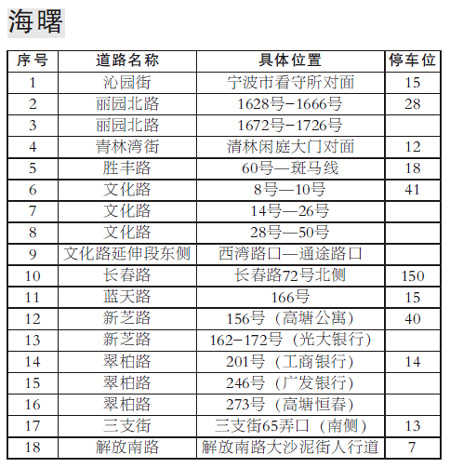 另據(jù)了解,通過挖掘潛力,目前江東和鄞州已新增免費(fèi)停車位近1000個(gè),而海曙和江北預(yù)計(jì)可新增免費(fèi)停車位700多個(gè)。