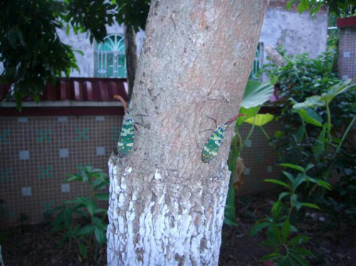 這是八月份在廣東潮洲看到的,一些身上穿著“迷彩服”,頭上長著兩只長長的觸角,八只長爪在樹木上爬行,速度很快,隱藏在樹葉叢中很能“迷惑”來犯之?dāng)衬!不知是什么蟲蟲?