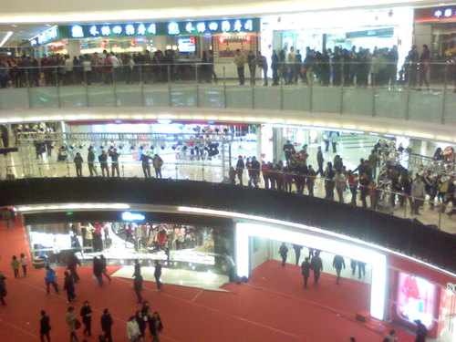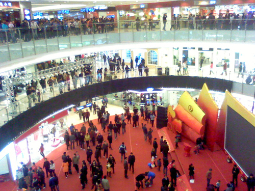 寧波手機(jī)報讀者136****6220:這是江北萬達(dá)廣場開業(yè)那天拍的,由于手機(jī)出了點問題,今天才將照片取出...開業(yè)那天真是人山人海,平時10分鐘就到的路程那天車子開了1個多小時!我們四個朋友去3樓餐廳吃飯,發(fā)現(xiàn)餐廳門口全是人根本找不到位置坐,真是有錢還沒地方花呢!呵呵!那個場面真是壯觀啊!現(xiàn)在離開業(yè)過去已經(jīng)半個多月了,不知現(xiàn)在商場里是否熱鬧依舊?