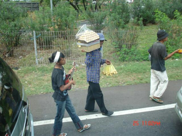 手機(jī)報(bào)讀者139****8094:在印尼的一公路邊上,游走著許多的小商販,有汽車在等紅燈緩慢通過(guò)時(shí),立即就會(huì)有許多的小販來(lái)到車窗旁向游人推銷食品,游人在購(gòu)買商品時(shí)還能免費(fèi)聽(tīng)到當(dāng)?shù)氐拿窀枘兀」!可惜的是偶一句也沒(méi)聽(tīng)懂喲!