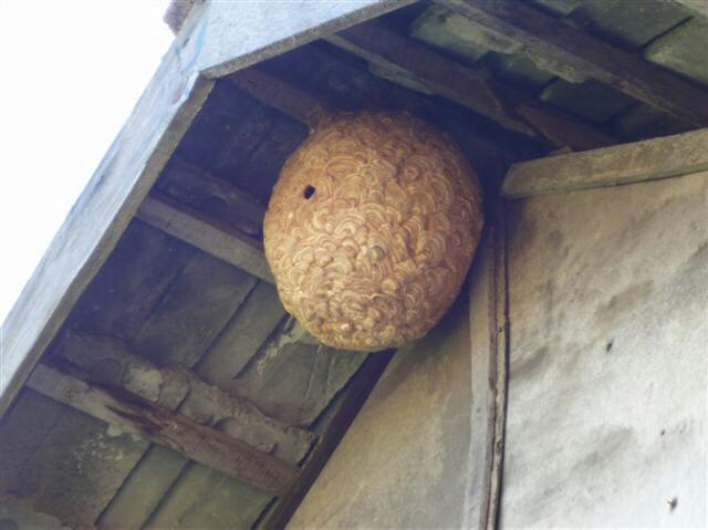 中國(guó)寧波網(wǎng)手機(jī)記者139****8094:錢湖邊一農(nóng)家屋檐下的馬蜂窩比籃球還大!看似一件“工藝品”一樣!哈哈!馬蜂的“建筑”水平高!實(shí)在是高!