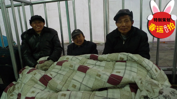 中國(guó)寧波網(wǎng)手機(jī)記者135****7083:昨天晚上8點(diǎn)半,天空飄著小雪,寧波火車東站廣場(chǎng)上的臨時(shí)候車大棚里已經(jīng)聚集了不少旅客。21歲的張雪媛抱著10個(gè)月大的兒子坐在行李上,等著春運(yùn)的來臨。旁邊幾個(gè)人是她湖北的老鄉(xiāng)。19日早上7:03,她們乘坐的L146列車將是從寧波始發(fā)的第一列春運(yùn)火車。記者現(xiàn)場(chǎng)了解到,這些旅客都是從周邊縣市區(qū)趕來的,準(zhǔn)備搭乘明天上午的火車,因?yàn)榻裉煜卵,就?zhǔn)備在這里過夜等候。
