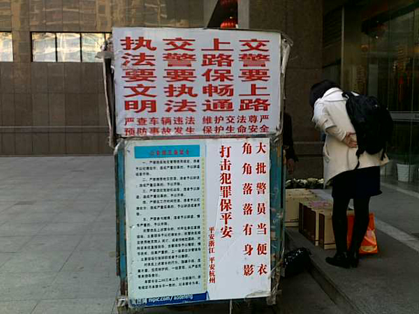 杭州的機(jī)動三輪車打著“交警要上路,上路保暢通!交警要執(zhí)法,執(zhí)法要文明!”的廣告!穿行在都市的大街小巷暢通無阻!很是“給力”……