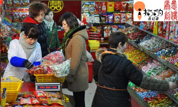 中國寧波網(wǎng)手機記者158****1750:過年過節(jié)“甜甜蜜蜜”當然也不可少的!你們猜猜看這位女士買了那么多糖果是團購嗎?----愚偶原創(chuàng)