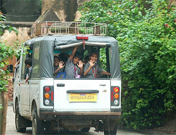 印度一小鎮(zhèn)接送學(xué)生的“大蓬車”行駛在路上!“大蓬車”在印度雖然很普遍!可對學(xué)生的安全來說不“給力”喲!