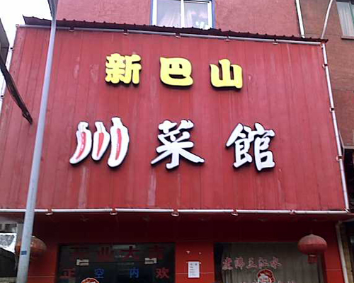 寧徐路平安賓館旁邊一家川菜館的店牌上用三個“紅辣椒”組成了一個“川”字!很形象!很“給力”!哈哈!原來“川菜”的辣就是這么來的!