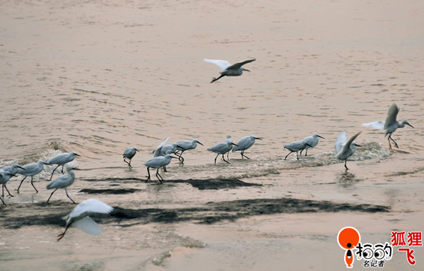中國(guó)寧波網(wǎng)手機(jī)記者137****6468:一群白鷺在小潮到來(lái)時(shí)乘機(jī)捕魚(yú),它們?yōu)榱俗熘械氖澄锉舜四阕肺亿s,好一番美景!