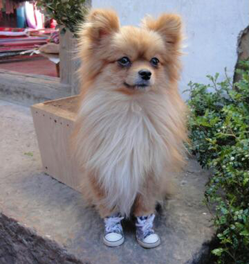 中國(guó)寧波網(wǎng)手機(jī)記者139****8094:辛卯年初春正月初九窄暖還寒,中山東路一家店鋪的門前一只可愛的穿著球鞋的狗狗很是“給力”!這只可愛的小狗狗店門前的石臺(tái)階上上演“穿鞋立正秀”,“秀”的不是鞋“秀”的是主人的“寂寞”吧!哈哈!