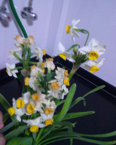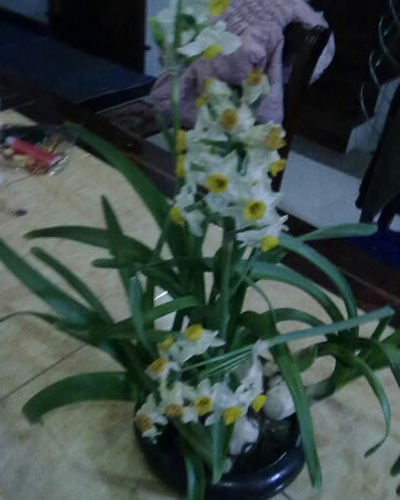 中國寧波網(wǎng)手機記者152****3723:經(jīng)過兩個月的培養(yǎng),水仙花終于全部含苞綻放,亭亭玉立地展現(xiàn)在我面前,自信地散發(fā)出誘人的清香,今天是情人節(jié),這是我收到的最有價值的禮物!祝大家情人節(jié)快樂……看!葉子和花在陽臺上翩翩起舞!