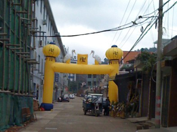 前兩天去寧海,車開到某處,突然看到這種充氣的儀仗,開始還不知道,開到了才知道原來是有人仙逝。感覺也太排場了!